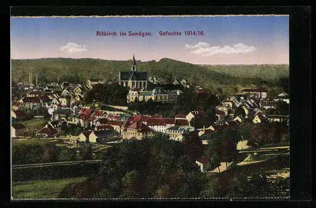 AK Altkirch im Sundgau, Ortsansicht aus der Vogelschau, Gefechte 1914 /16