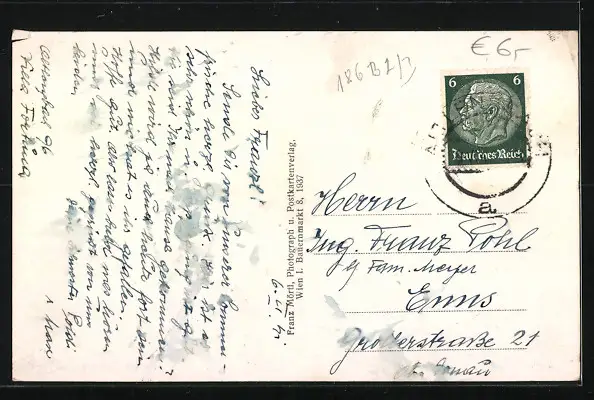 alte Ansichtskarte, gelaufen 1941, minimaler Einriss re. oben, guter Zustand