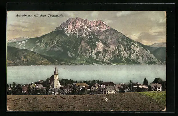 AK Altmünster, Ortsansicht mit dem Traunstein