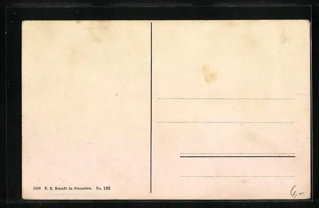 Personenbezogene Daten auf der Rückseite der Karte wurden durch blauen Textmarker unkenntlich gemacht. Die blauen Stellen sind auf die Vorderseite durchgeweicht und wirken sich negativ auf das Postkartenfoto aus