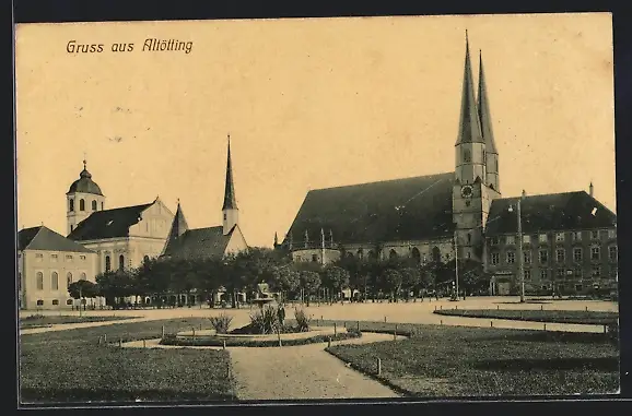 AK Altötting, Kirche mit Gartenanlage