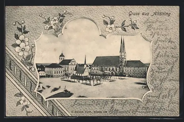 AK Altötting, Marktplatz mit Kirche und Rathaus