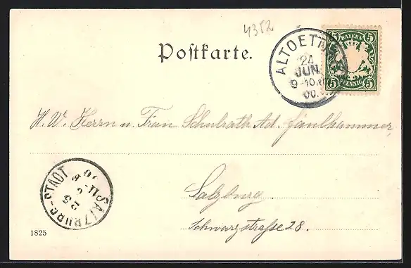 alte Ansichtskarte, gelaufen 1900, Stempelspur, guter Zustand