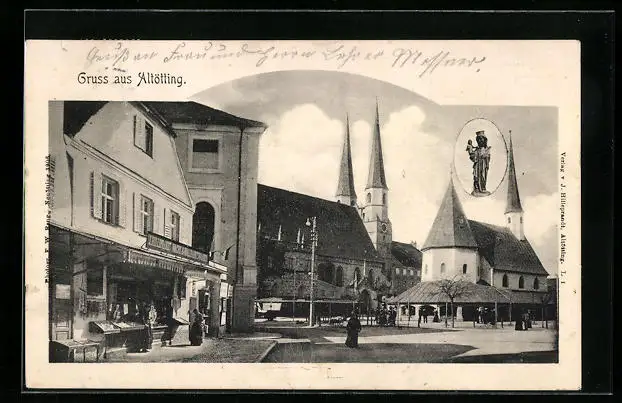 AK Altötting, Partie an der Kirche, Gnadenbild