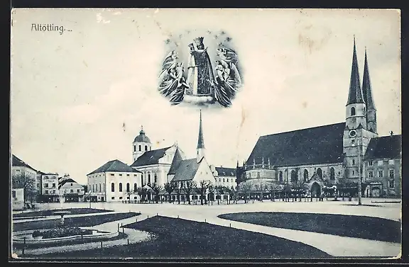 AK Altötting, Strassenpartie mit Kirche, Gnadenbild