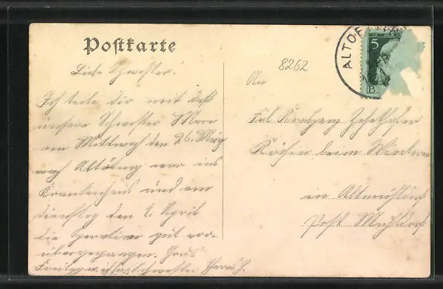 alte Ansichtskarte, gelaufen, Briefmarke entfernt, rückseitig Oberflächenschaden, guter Zustand