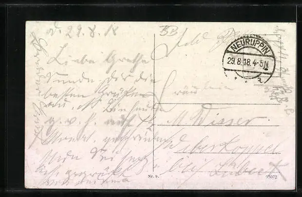 alte Ansichtskarte, gelaufen 1918 als Feldpost, Eckknick re. unten, guter Zustand