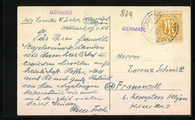 alte Ansichtskarte, gelaufen 1946, guter Zustand