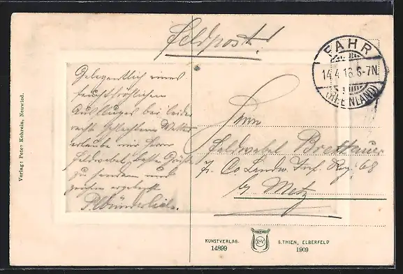 alte Ansichtskarte, gelaufen 1916, Eckknick re. oben, guter Zustand