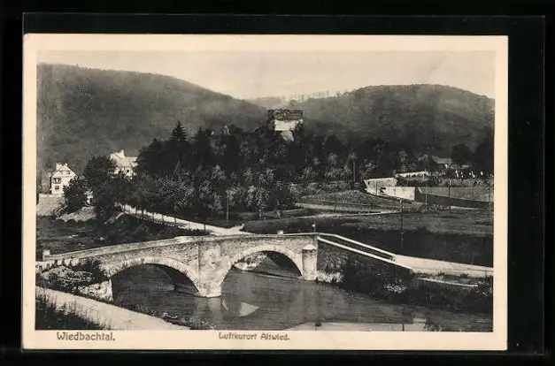 AK Altwied / Wiedbachtal, Ortsansicht mit Flussbrücke