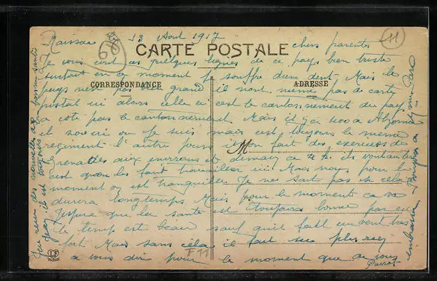 ungelaufen, Rückseite beschrieben 1917, guter Zustand