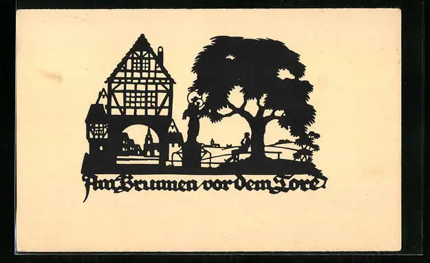 AK Am Brunnen vor dem Tore, Scherenschnitt