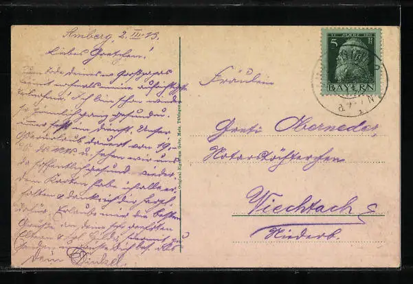 alte Ansichtskarte, gelaufen 1913, Eckknick unten rechts, guter Zustand