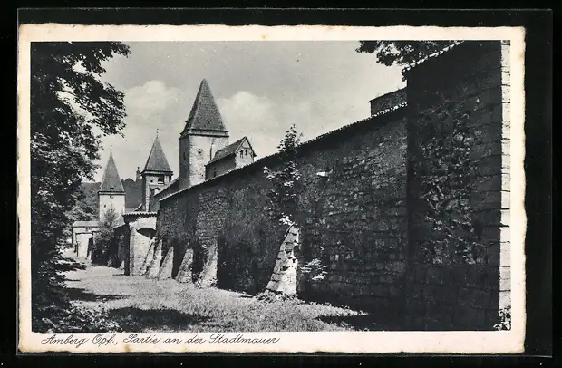 AK Amberg, Partie an der Stadtmauer