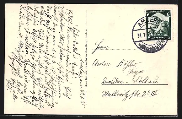 alte Ansichtskarte, gelaufen 1935, guter Zustand