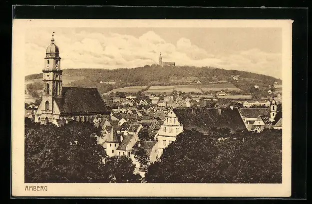 AK Amberg, Teilansicht mit Fernblick aus der Vogelschau