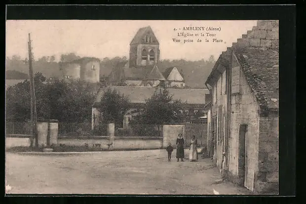AK Ambleny, L`Eglise et la Tour, Vue prise de la Place