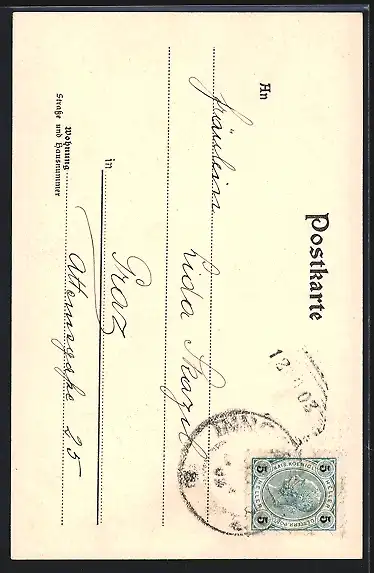 alte Ansichtskarte, gelaufen 1903, Stempelspur, guter Zustand