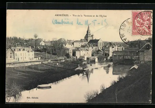 AK Ambrières, Vue de la Varenne et de l`Eglise