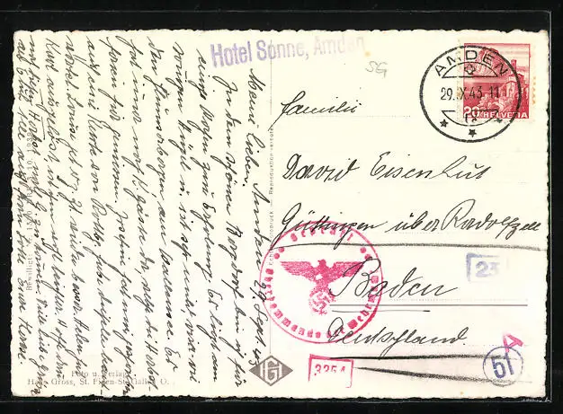 gelaufen 1943, Eckknick oben li., guter Zustand