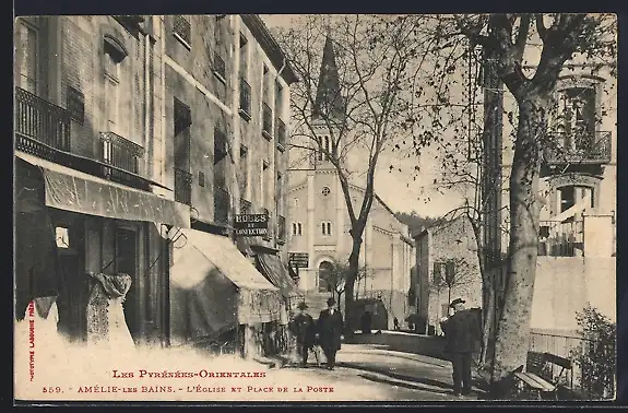 AK Amélie-les-Bains, L`Église et Place de la Poste
