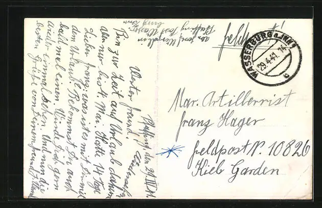 alte Ansichtskarte, gelaufen als Feldpost 1941, Eckknick li. unten, guter Zustand