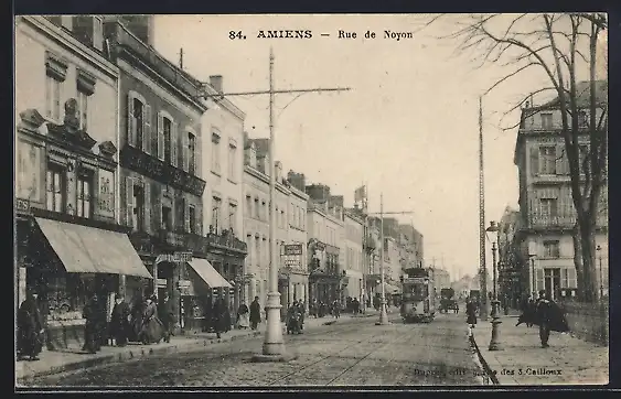 AK Amiens, Rue de Noyon, Strassenpartie mit Strassenbahn