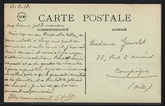 Personenbezogene Daten auf der Rückseite der Karte wurden durch blauen Textmarker unkenntlich gemacht. Die blauen Stellen sind auf die Vorderseite durchgeweicht und wirken sich negativ auf das Postkartenfoto aus