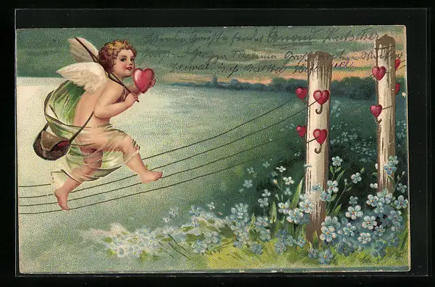 AK Amor balanciert auf einem Telegraphenmasten