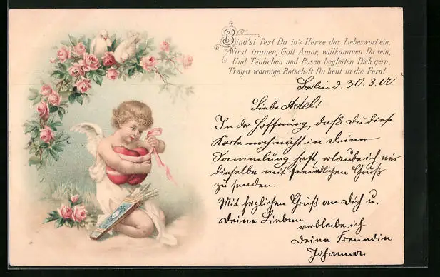AK Amor bindet Herzen aneinander