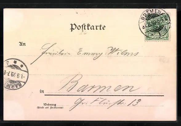 alte Ansichtskarte, gelaufen 1899, guter Zustand