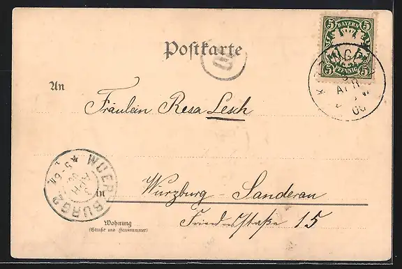 alte Ansichtskarte, gelaufen 1900, guter Zustand
