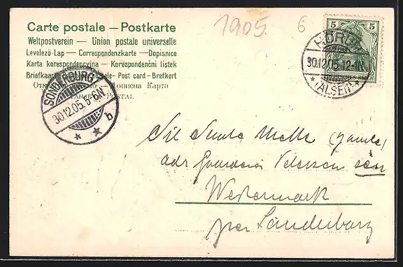 alte Ansichtskarte, gelaufen 1905, guter Zustand