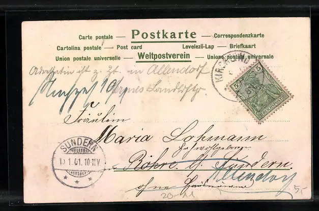alte Ansichtskarte, gelaufen 1901, guter Zustand