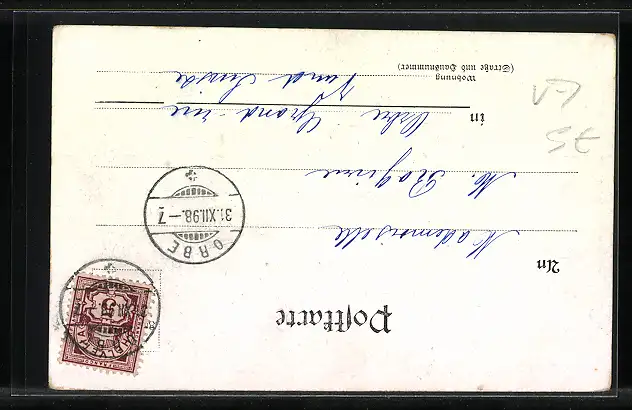 alte Ansichtskarte, gelaufen 1898, guter Zustand