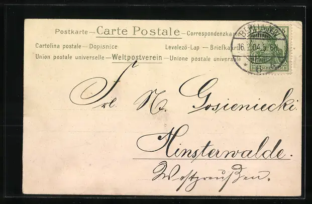 alte Ansichtskarte, gelaufen 1904, kl. Einrisse links und rechts mittig, guter Zustand