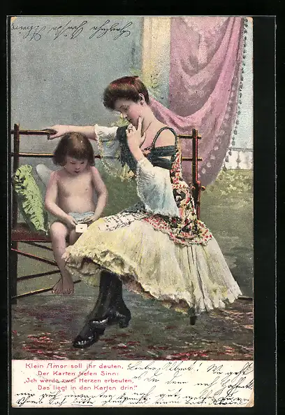 AK Amor liest mit Karten die Zukunft einer Frau