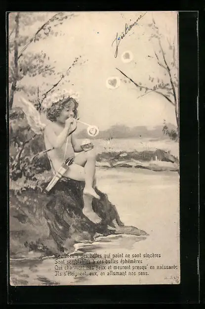 AK Amor mit Herz-Seifenblasen