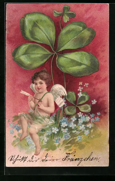 AK Amor mit Kleeblättern