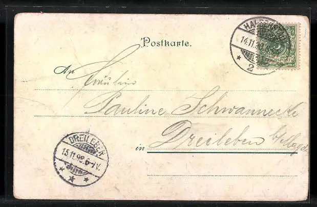 alte Ansichtskarte, gelaufen 1898, guter Zustand