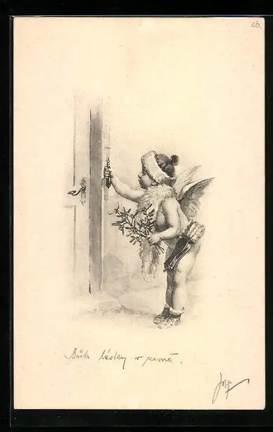 AK Amor mit Pfeilen läutet an der Tür