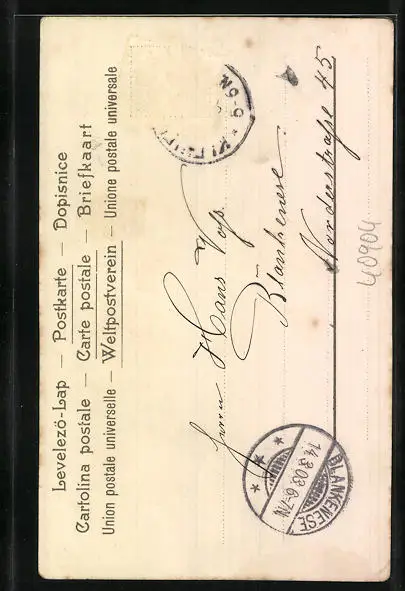 alte Ansichtskarte, gelaufen 1903, Briefmarke entfernt, guter Zustand