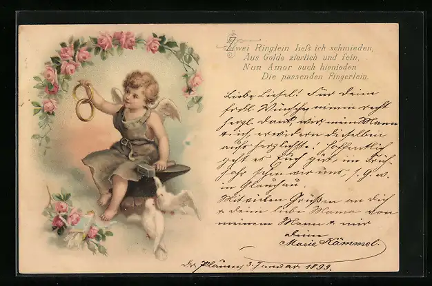 AK Amor schmiedet Eheringe auf einer Wolke