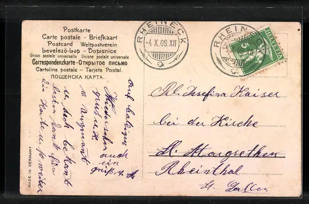 alte Ansichtskarte, gelaufen 1909, Eckknick oben re., guter Zustand