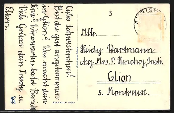 alte Ansichtskarte, gelaufen, Briefmarke entfernt, guter Zustand