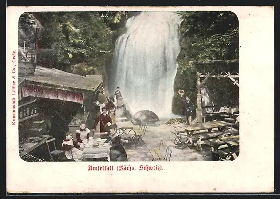 AK Amselfall /Sächs. Schweiz, Gasthaus am Amselfall, Garten