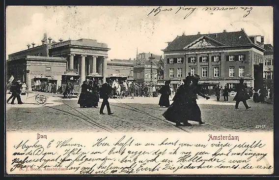 AK Amsterdam, Dam, Pferdebahn