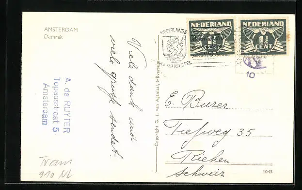 alte Ansichtskarte, gelaufen, Einriss re., guter Zustand