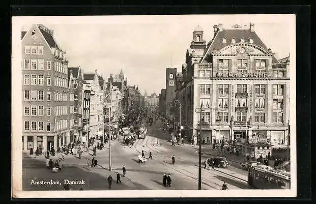 AK Amsterdam, Damrak, Strassenbahn
