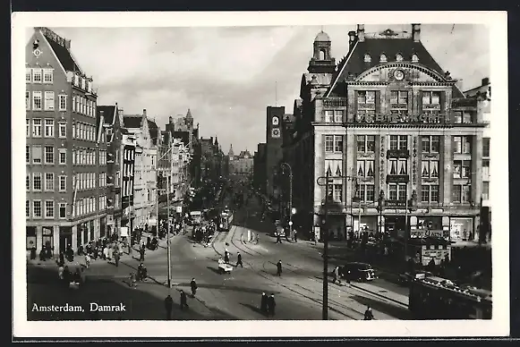 AK Amsterdam, Damrak mit Strassenbahn